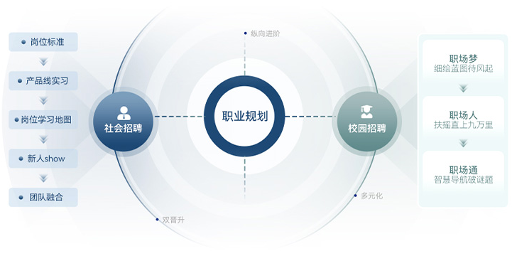 我們構建了一套完善的管理、專業雙晉升通道發展體系,為員工提供多元化的職業成長路徑。員工可以從自身能力和個人職業規劃出發,選擇任意通道進行縱向進階,成為業務領域的專家或帶領團隊的Leader。